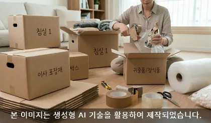이사에 필요한 포장재(박스, 테이프, 완충재 등)를 준비합니다. 물품별로 적절하게 포장하여 안전하게 운반될 수 있도록 합니다.